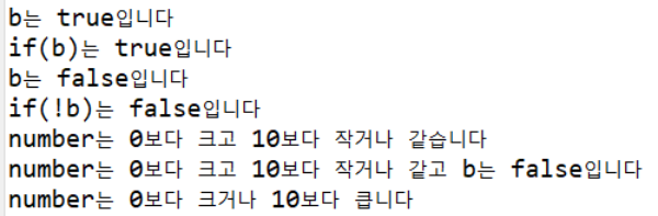 System.out.println("number는 0보다 크고 10보다 작거나 같고 b는 false입니다");