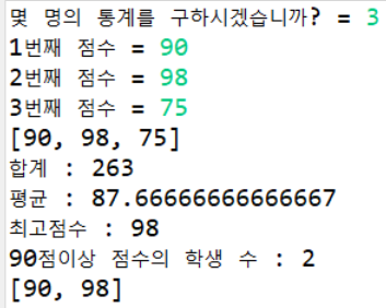 // 입력 // 학생 수 몇명? // 학생들의 점수 입력