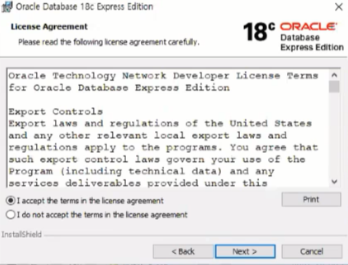 압축 풀고 설치마법사 말고, Oracle Database 18c Express Edition.msi로 설치