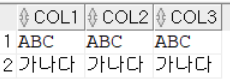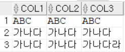 - COL3 컬럼은 20BYTE 이기 때문에 '가나다라'를 입력할 수 있지만