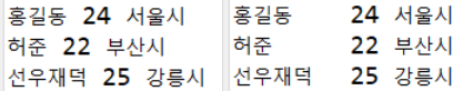 - 글자수가 달라서 줄이 맞지 않는데 \t 작성하여 줄 맞춤